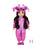 Esta adorable muñeca viste un cómodo pijama rosa con capucha y orejas inspiradas en el personaje de Lilo & Stitch, lista para compartir los momentos más dulces del día. Su cabello largo y rizado invita a crear distintos peinados, mientras que sus sandalias y accesorio combinan perfectamente con su estilo relajado y divertido.