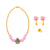 ¡La elegancia y la dulzura de Bella ahora están al alcance de tu peque! Este encantador set incluye un collar de cuentas doradas con detalles en rosa y un colgante con la imagen de Bella rodeado de rosas, unos delicados aros con forma de flores rosadas y una sortija dorada con detalle brillante.